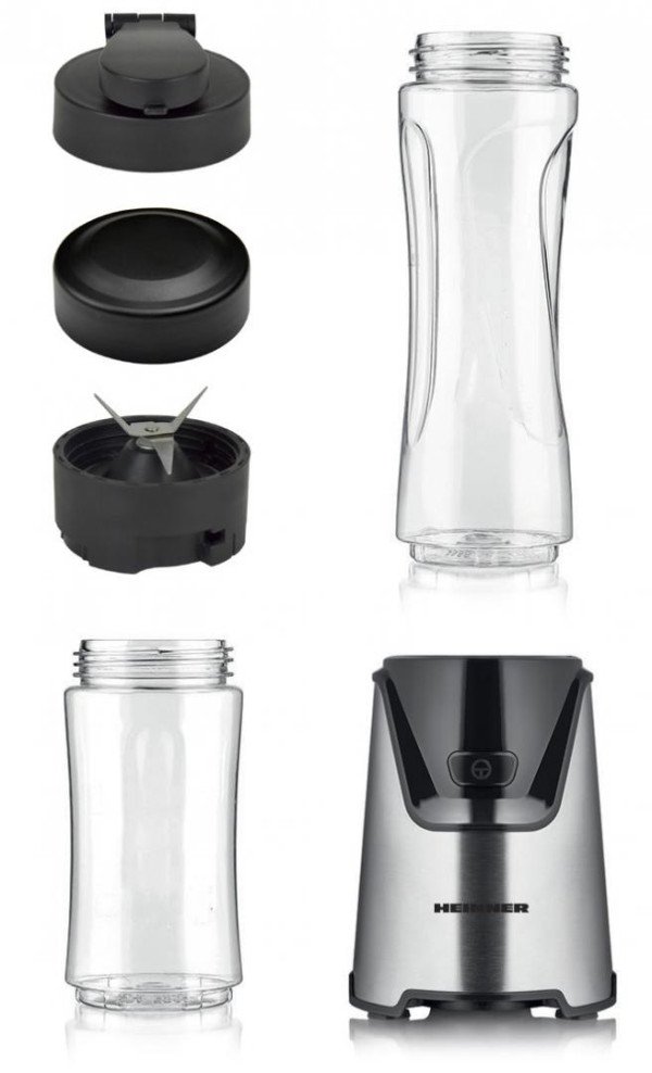 Sportski blender Heinner VellGo Mik 400 HSB-T400SS, 400W, Tritan posude bez BPA 600/400ML, dugme ON/OFF, 19000RPM, sečiva od nerđajućeg čelika, kućište od nerđajućeg čelika, srebrno/crno