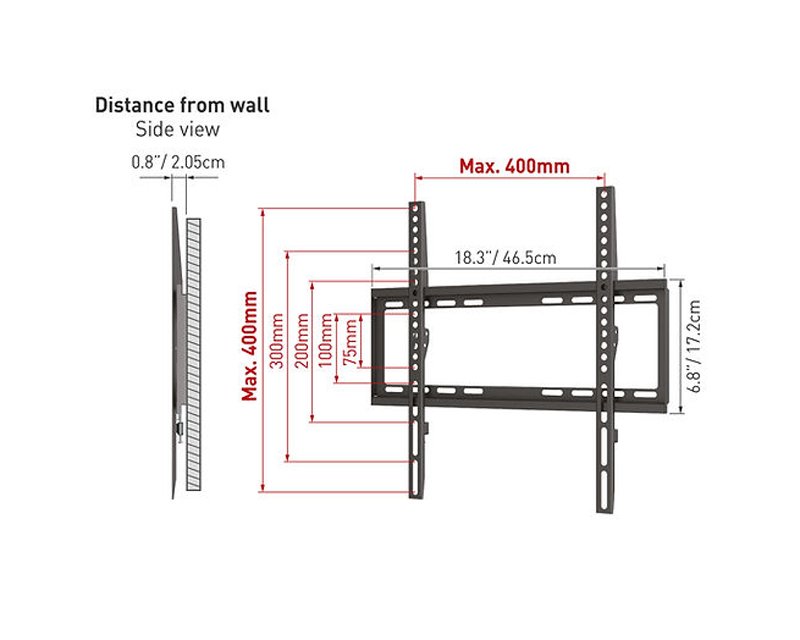 Montiranje VESA 100mm x 100mm, VESA 200mm x 200mm, VESA 75mm x 75mm, VESA 400mm x 400mm, VESA 400mm x 200mm, VESA 300mm x 300mm, VESA 200mm x 100mm, VESA 400mm x 300mm, VESA 100mm x 200mm, VESA 300mm x 400mm, VESA 300mm x 200mm, VESA 200mm x 300mm