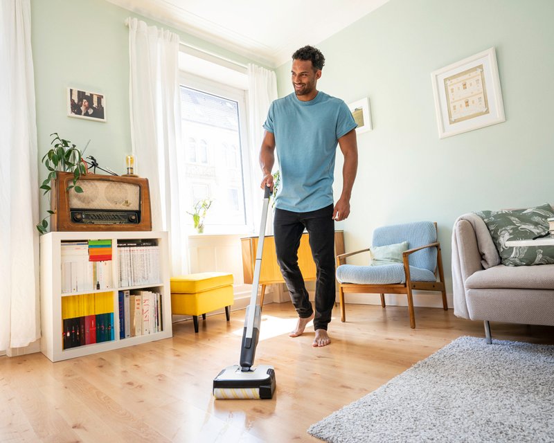 Pakovanje | Četka za čišćenje, FC 2 univerzalni valjak, Punjač za bateriju, 1x sredstvo za čišćenje podova RM 536 30ml, Baterija, Baza za usisivač |