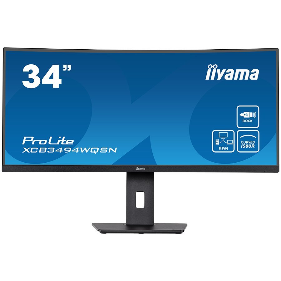 IIYAMA Monitor XCB3494WQSN-B5 34" ETE UW IPS-panel, 3440×1440 120Hz, 300cd/m², 0,4ms MPRT, Speakers, USB-C Dock (LAN, DP-Out, 65W PD), DisplayPort, HDMI, KVM, USB3.0x3, FreeSync Premium, 15cm Height Adj. Stand