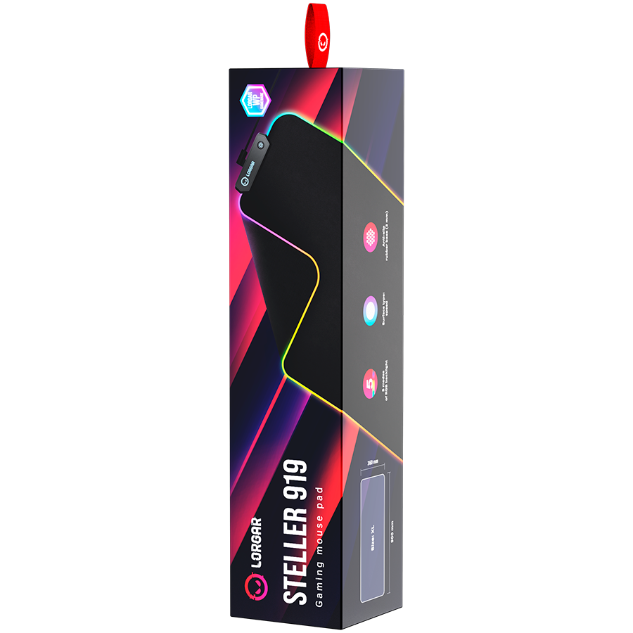 Lorgar Steller 919, Gaming mouse pad, High-speed surface, anti-slip rubber base, RGB backlight, USB connection, Lorgar WP Gameware support, size: 900mm x 360mm x 3mm, weight 0.635kg