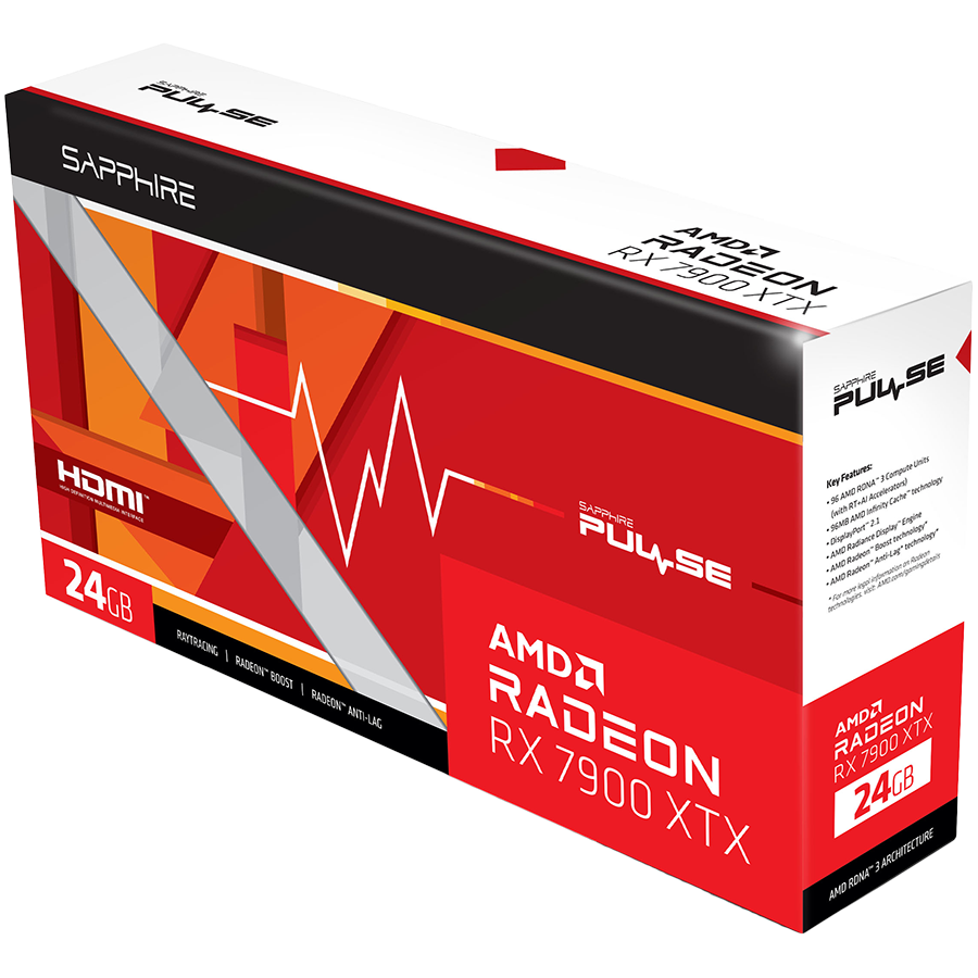 SAPPHIRE AMD RADEON RX 7900XT GAMING OC Pulse 20GB GDDR6 320bit, 2450MHz / 20Gbps, 3x DP, 1x HDMI, 3 fan, 2.7 slots