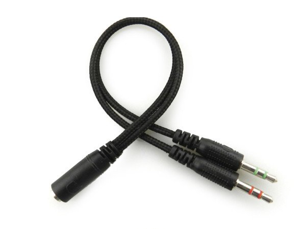 • Converter for PC: 3.5 mm female 4 pole MiniJack to 2 x 3.5 mm male 3 pole MiniJack