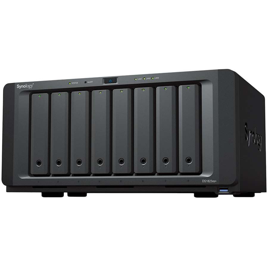 Synology DS1823xs+,Tower,8-Bay 3.5''SATA HDD/SSD, 2xM.2 2280 NVMe SSD,CPU AMD Ryzen V1780B 4-core 3.35(base) /3.6(turbo)GHz,8 GB DDR4 ECC SODIMM,2xRJ-45 1GbE LAN, 1xRJ-45 10GbE LAN,3 xUSB 3.2 Port, 2xeSata, 1xOut-of-Band Management LAN Port,6.2kg,5y